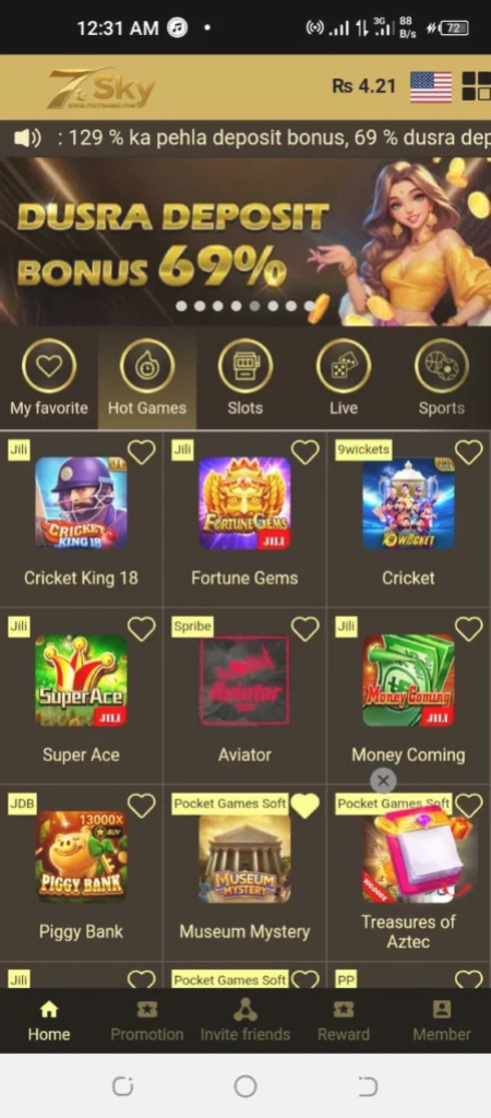 7 Sky Game is one of the most played casino game in Pakistan. This application offers you an user friendly interface which makes this platform easy to use. Furthermore this platform offers 15 new and amazing games which will never let you get bored. This application also enables the multiplayer option 3A Teen Patti Game. Now you can play your favorite game with your best friend or with your family members.