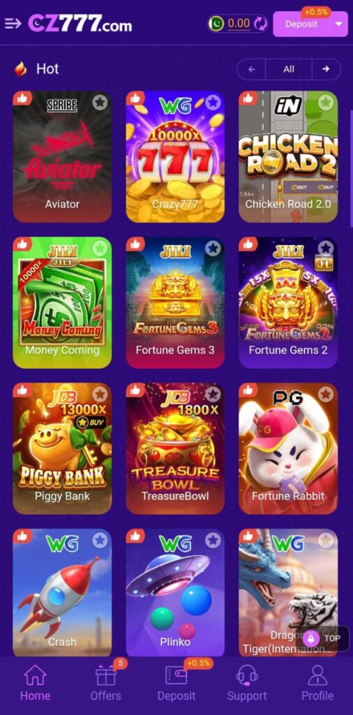 The CZ777 Game is one of the most trending casino gaming application in Pakistan. This application launched recently and hit its peak. Furthermore this platform offers a high quality of graphics which increases the users gaming experience. This application gives free bonuses and rewards which makes this platform more interesting and enjoyable.