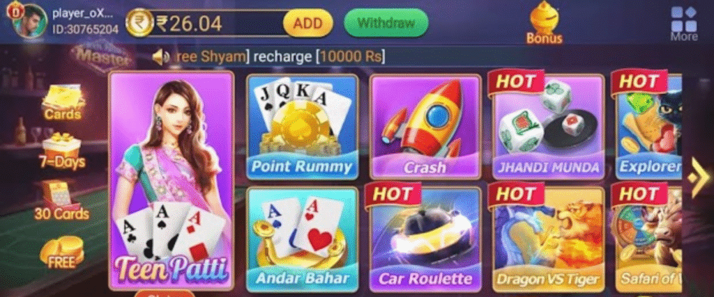 Teen Patti Master Game is one of the most famous and trending casino gaming application in Pakistan. Furthermore this platform offers you an user friendly interface. Which makes this application easy to use. This application offers more than 15 new and amazing casino games which will never let you get bored.
