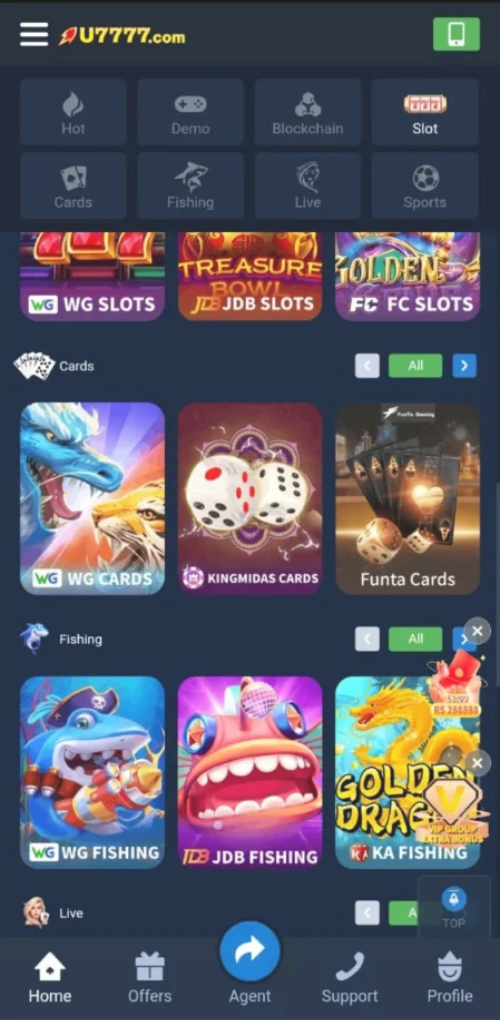 U7777 Game is one of the most played casino game in Pakistan. This application offers you an user friendly interface which makes this platform easy to use. Furthermore this platform offers 15 new and amazing games which will never let you get bored. This application also enables the multiplayer option. Now you can play your favorite game with your best friend or with your family members.